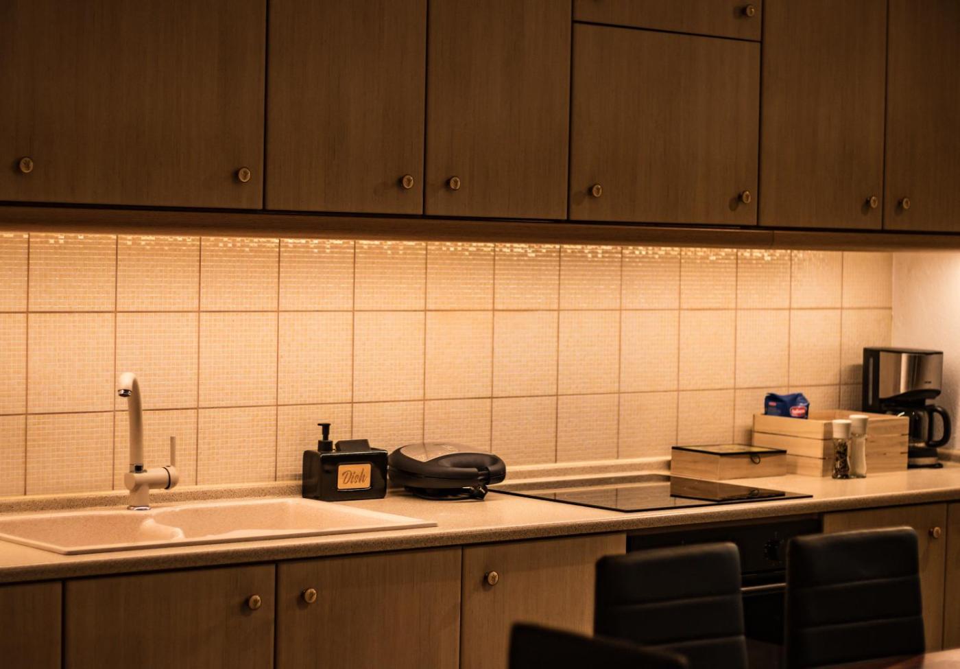 Three-Bedroom Apartment. This spacious apartment consists of 1 living room, 3 separate bedrooms and 2 bathrooms with a bath and a shower. The fully equipped kitchen features a stovetop, a refrigerator, kitchenware and an oven. The air-conditioned apartment provides a flat-screen TV, a washing machine, soundproof walls, a tea and coffee maker as well as garden views. The unit offers 5 beds.